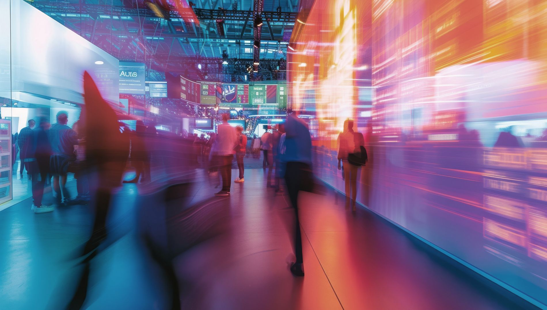 Ihre wichtigste Botschaft muss über den Köpfen der Menge thronen. Wer sind Sie und für welches Problem sind Sie die Lösung? Wir nutzen klare Lichtkanten und großformatige Typografie, die auch aus 20 Metern Entfernung Ordnung in das Chaos der Halle bringt.