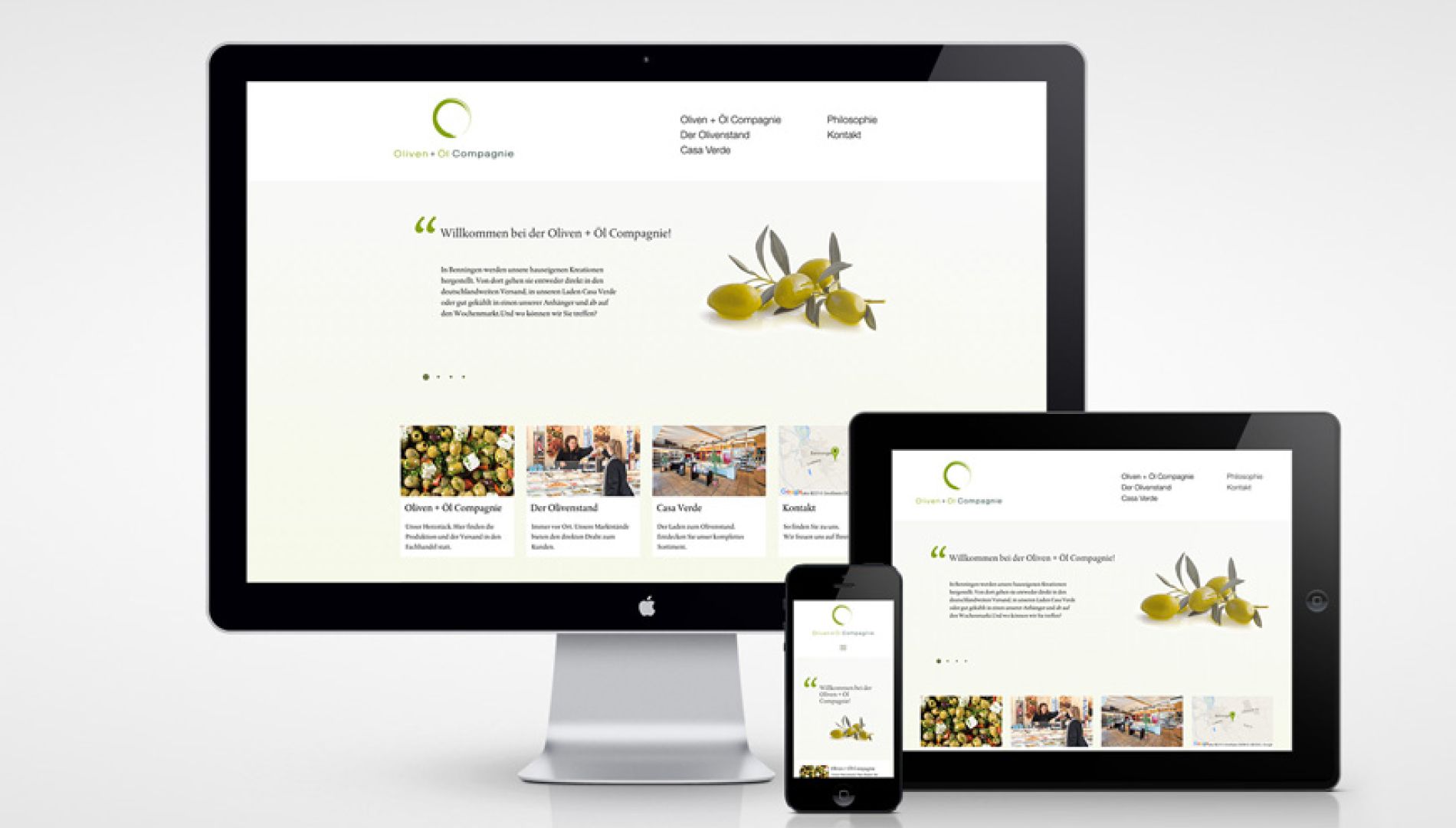 A Mediterranean lifestyle, fresh from the Allgäu. Not only there but far beyond, the Olivencompagnie and the Olivenstand are known for their high quality, premium products, and exquisitely crafted delicacies. These are sold through their own shop, Casa Verde, at markets throughout southern Germany, as well as through select retailers across the country. Starting now, you can experience their passion for these products and their commitment to quality online as well. The Oliven + Öl Compagnie presents itself with a new responsive website designed by the agency das formt. With its clean, modern design and high-quality photographs, the website conveys a positive impression of the company, the philosophy of the two managing directors, and their passion for the products and the Mediterranean lifestyle. “We love our work—we’re glad you enjoy it so much,” says Managing Director Jörn Niederberger, and you can really feel that.