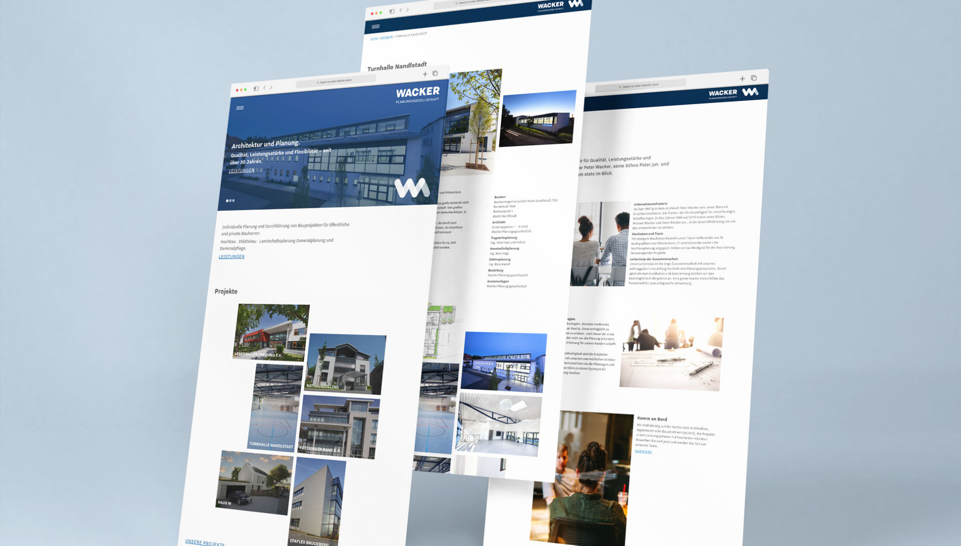 Die Wacker Planungsgesellschaft aus Nandlstadt vereint Architektur und Bauingenieurwesen unter einem Dach. Als langjähriger Partner für komplexe Bauvorhaben im Raum Freising steht das Unternehmen für technische Präzision, gestalterische Substanz und großer Erfahrung in der Umsetzung von öffentlichen und privaten Bauvorhaben. Unsere Aufgabe war es, diese gewachsene Expertise in eine zeitgemäße, visuelle Identität zu übersetzen.