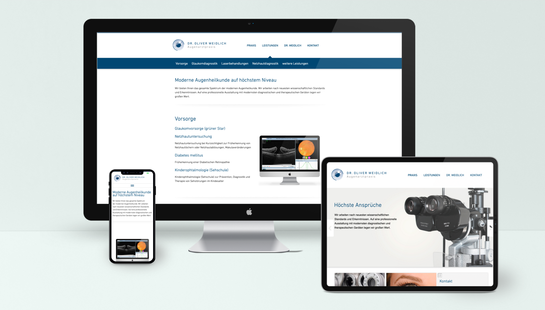 Wir begleiten die Augenarztpraxis seit der Übernahme bei der Entwicklung der Praxis als Marke. Ein stilvoll hochklassiges Erscheinungsbild und ein heller und moderner Internetauftritt wurde entwickelt.